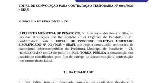 A Prefeitura Municipal de Penaforte, por meio do Edital nº […]