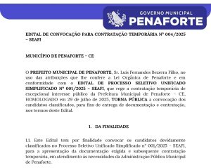 EDITAL DE CONVOCAÇÃO Nº 004.2025 SEAFI